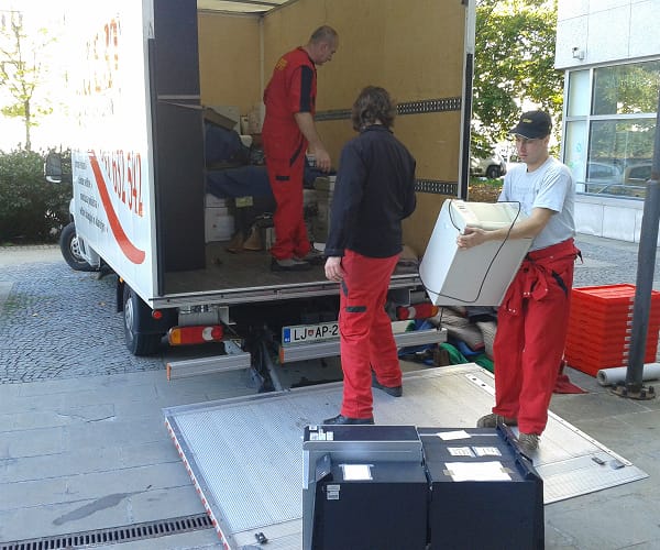 Glede na dostopnost vaše lokacije lahko uporabimo tudi transportni viličar, ki lahko pohištvo in večje predmete prenese po stopnicah.